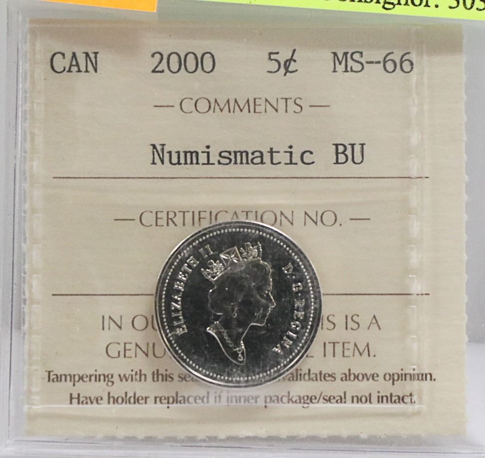 2000 CANADIAN 5 CENT COIN WINNIPEG MINT ICCS-MS-66