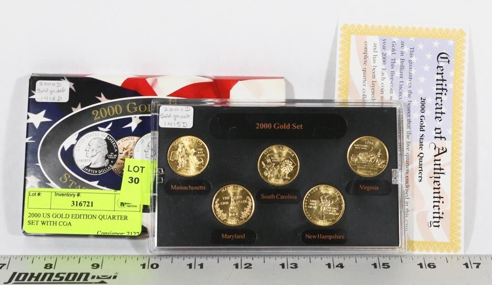 2000 US GOLD EDITION QUARTER SET WITH COA.