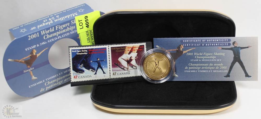 STAMP AND 24KT GOLD PLATED MEDALLION WORLD FIGURE SKATING CHAMPIONSHIPS SET