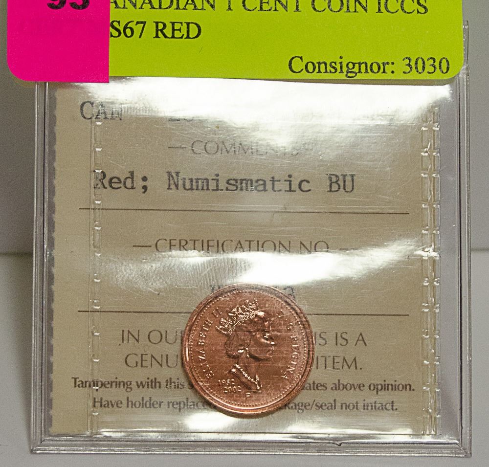 2002P CANADIAN 1 CENT COIN ICCS CERT MS67 RED