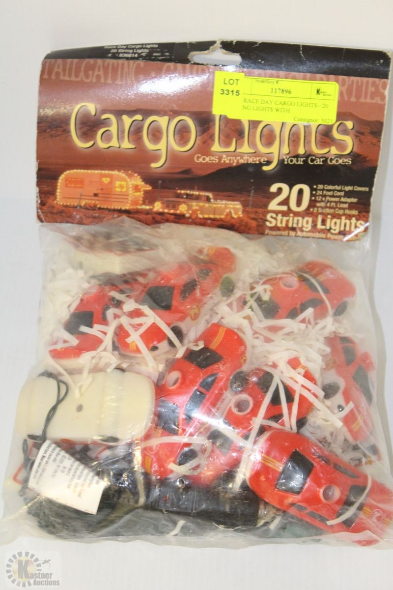 20FT CORD, 12V POWER ADAPTOR, & 8 SUCTION CUP HOOKS