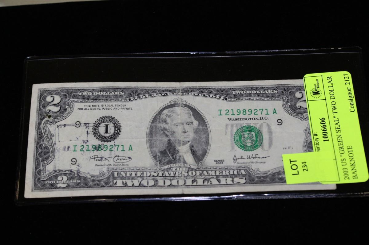 2003 US "GREEN SEAL" TWO DOLLAR BANKNOTE