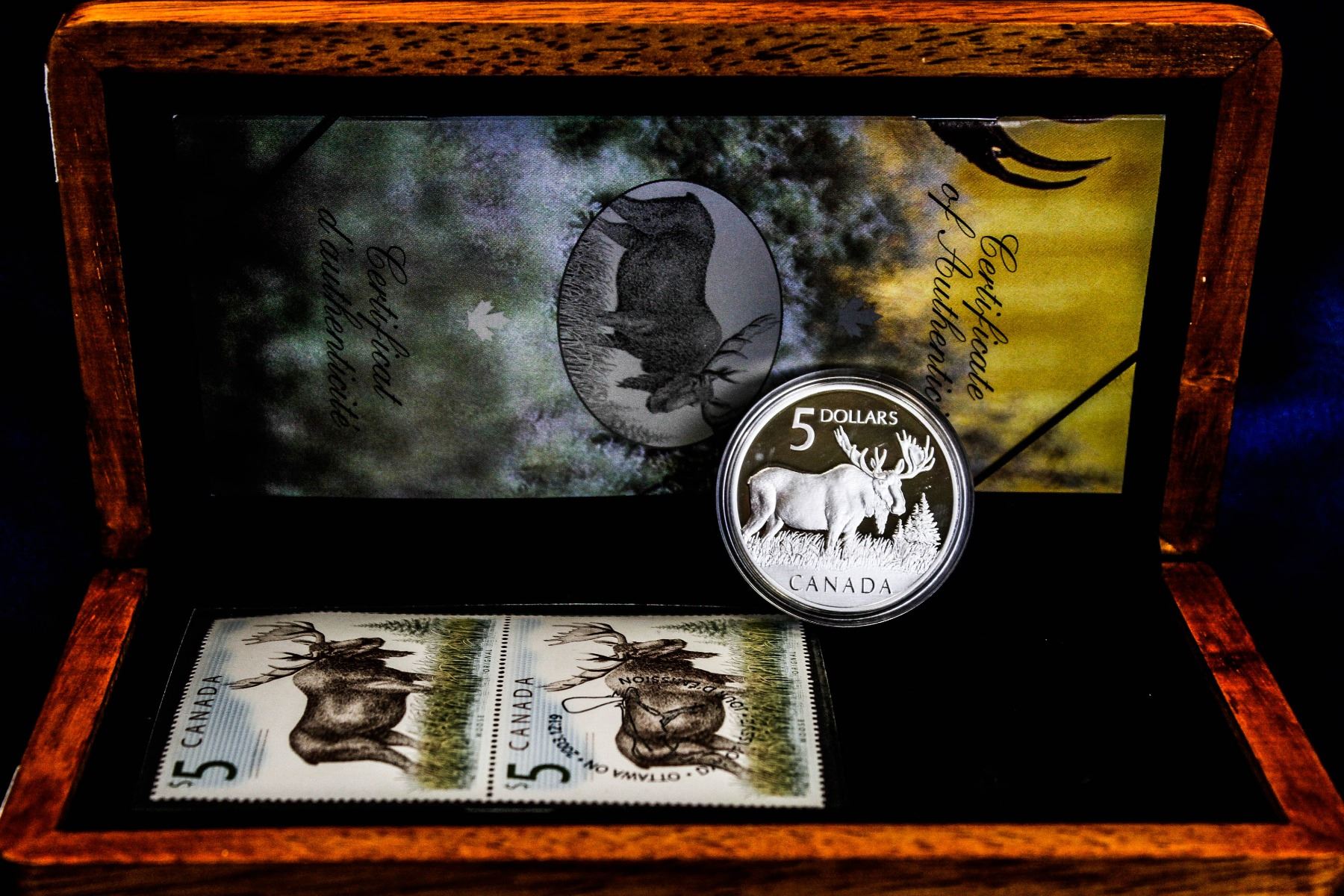 2004 .9999 SILVER $5 MAJESTIC MOOSE COIN & STAMP