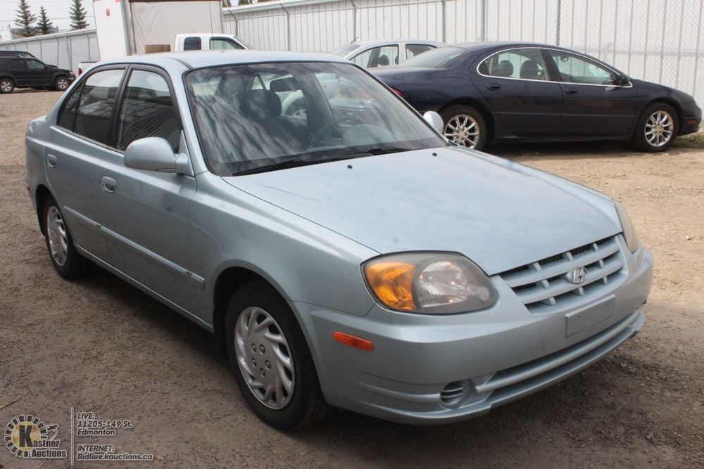 VIN: KMHCG45C94U505502 KM: 164,459KM Engine: 1.6L, 4 CYLINDER Color: M. BLUE 164,459KM, AUTOMATIC, CLOTH SEATS, 4 DOOR, POWERWINDOWS, POWER LOCKS, POWER MIRRORS, AIR CONDITIONING, AM/FM CD PLAYER, KEY ON TAG # 140 ALL BIDS ARE SUBJECT TO BANK, BAILIFF OR OWNER APPROVAL. VEHICLE