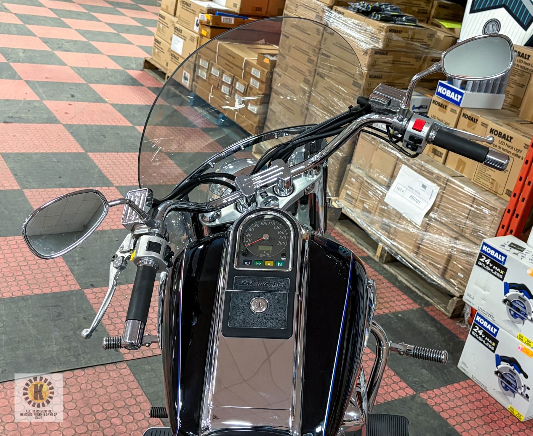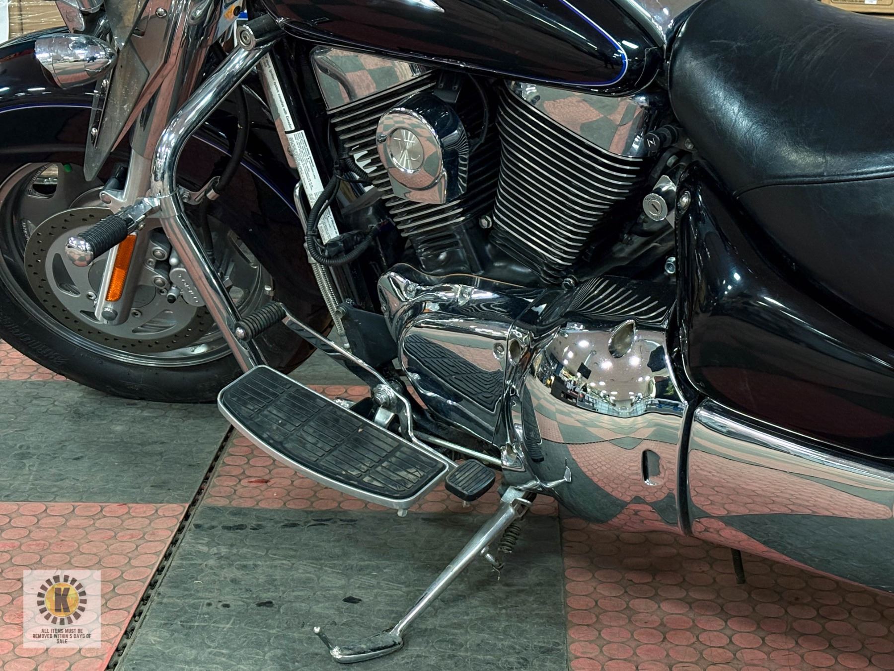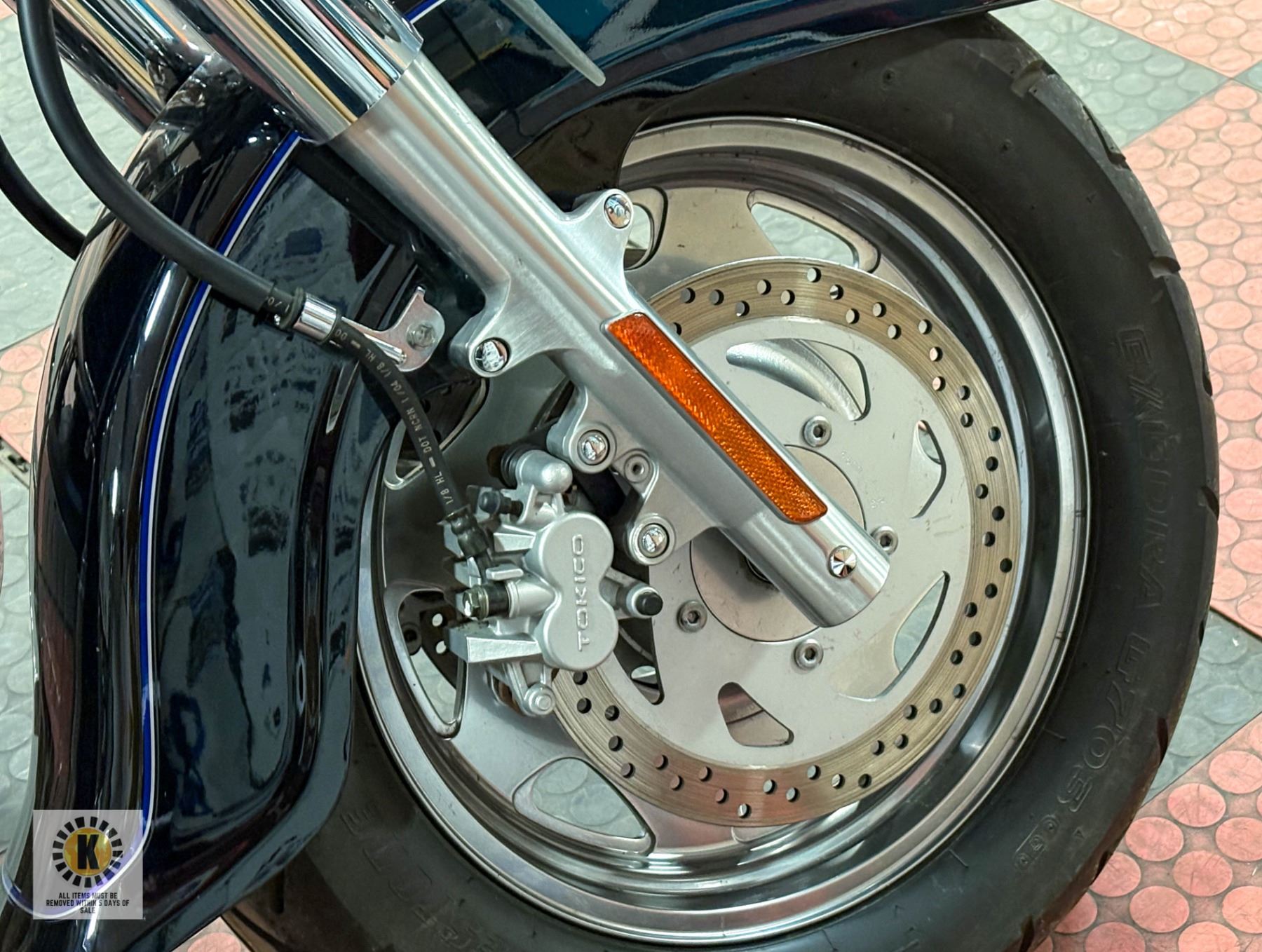 MOTORCYCLE FEATURES NORMAL ACTIVE STATUS, 1500 CC DRIVE SHAFT, MIDNIGHT BLACK METALLIC WITH SILVER/PURPLE, PIN STRIPES WITH NYLON COVER, FULL DRIVING WINDSHIELD, HIGHWAY DRIVING LIGHTS, HIGHWAY FOOT BARS/ FOOT PADS, EXTRA LARGE PADDED SEAT AND PASSENGER, BACK REST, SOFT SIDE LEATHER SADDLE, BAGS FACTORY TOOLS/MANUAL, COBRA LONG SHORT EXHAUST.