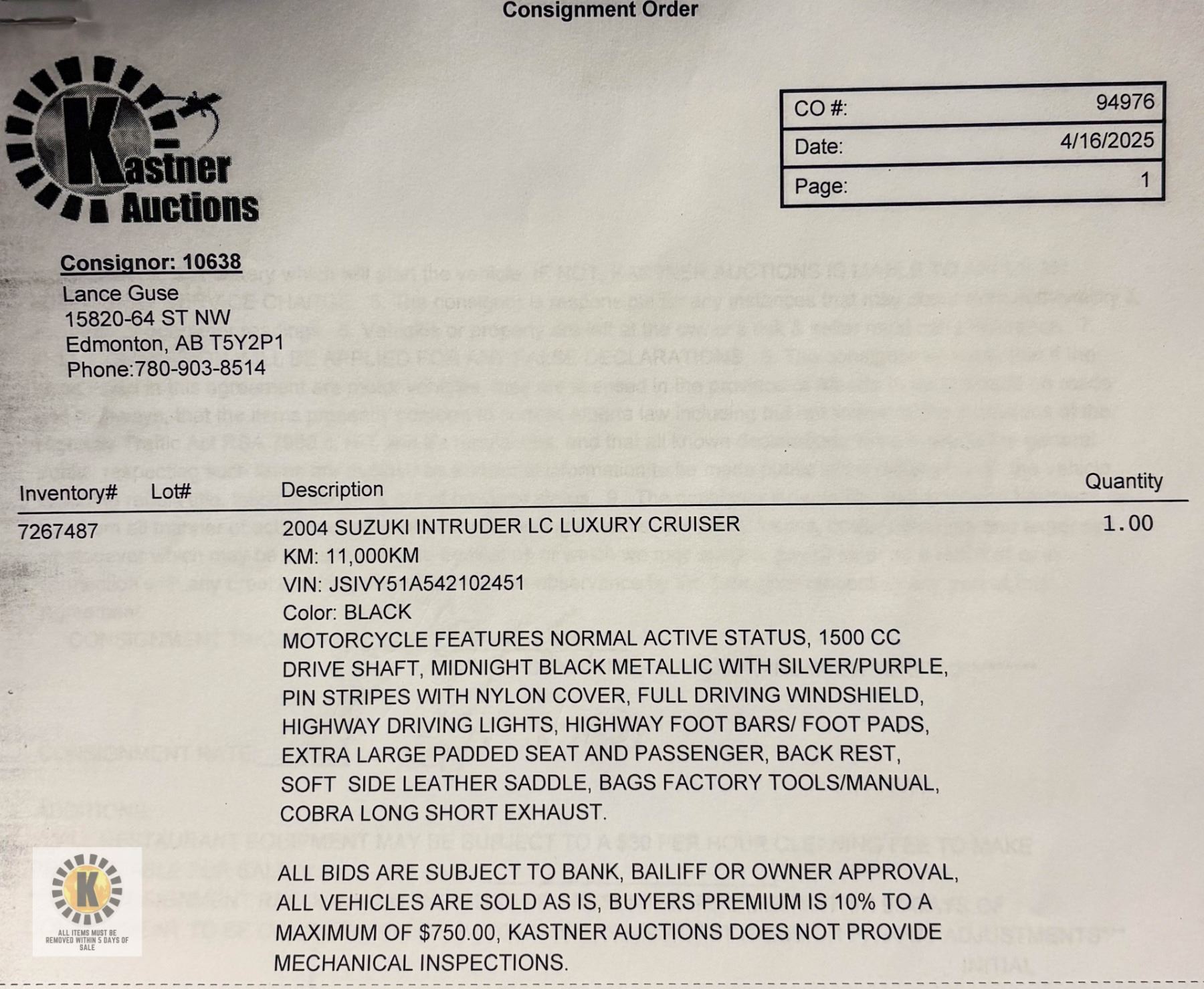 ALL BIDS ARE SUBJECT TO BANK, BAILIFF OR OWNER APPROVAL, ALL VEHICLES ARE SOLD AS IS, BUYERS PREMIUM IS 10% TO A MAXIMUM OF $750.00, KASTNER AUCTIONS DOES NOT PROVIDE MECHANICAL INSPECTIONS. **ALL ITEMS MUST BE REMOVED BY 5PM SATURDAY, APRIL 26TH 2025. ALL REMAINING ITEMS WILL BE SUBJECT TO A $6.00 PER DAY STORAGE CHARGE. ANY ITEMS REMAINING AFTER MONDAY, MAY 12TH 2025 WILL BE CONSIDERED FORFEITED. NO REFUNDS WILL BE ISSUED FOR FORFEITED ITEMS. TO SCHEDULE A PICK UP APPOINTMENT CLICK HERE