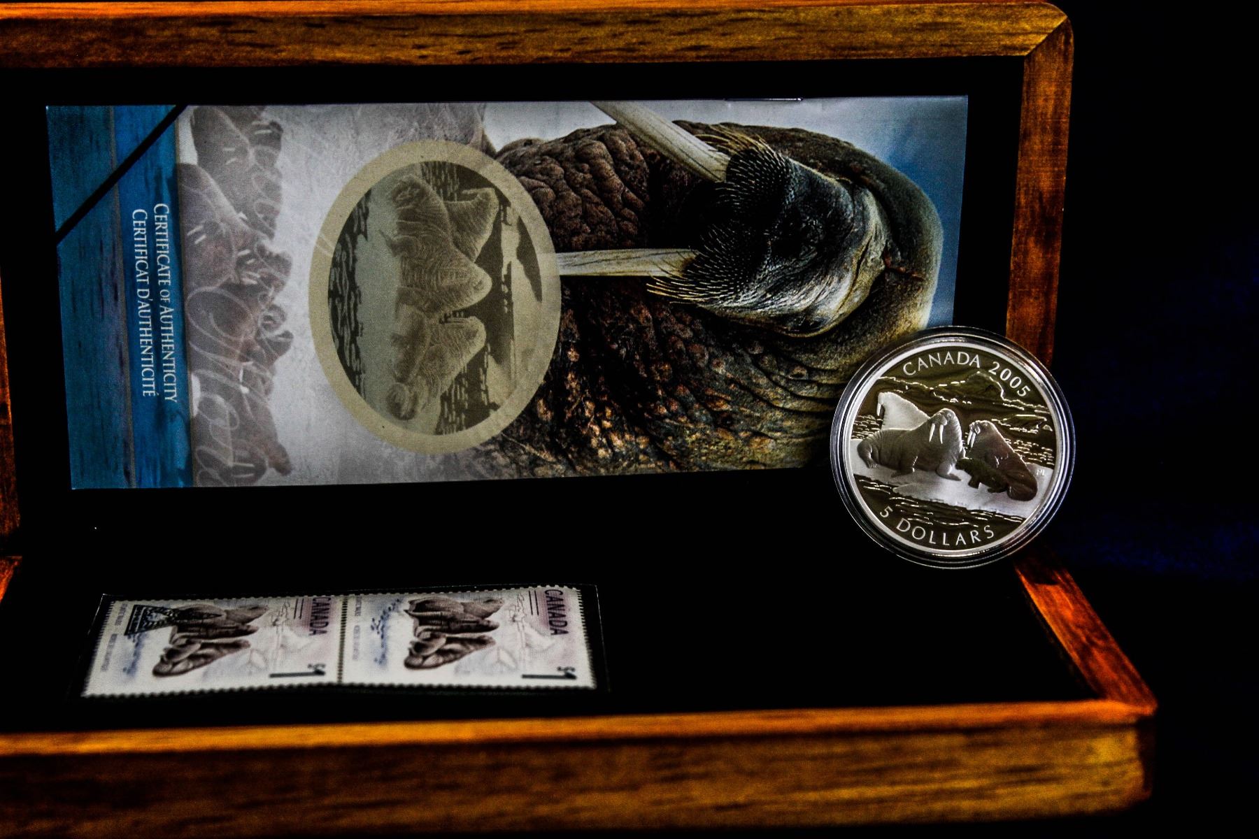 2005 .9999 SILVER $5 WALRUS AND CALF COIN & STAMP