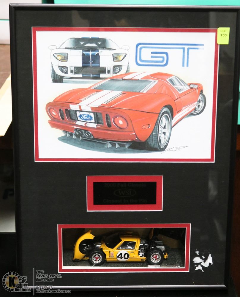 CAR BUDDY (CALG)" ENCASED CAR IN GLASS PICTURE FRAME 14 X 18. COLLECTIBLES