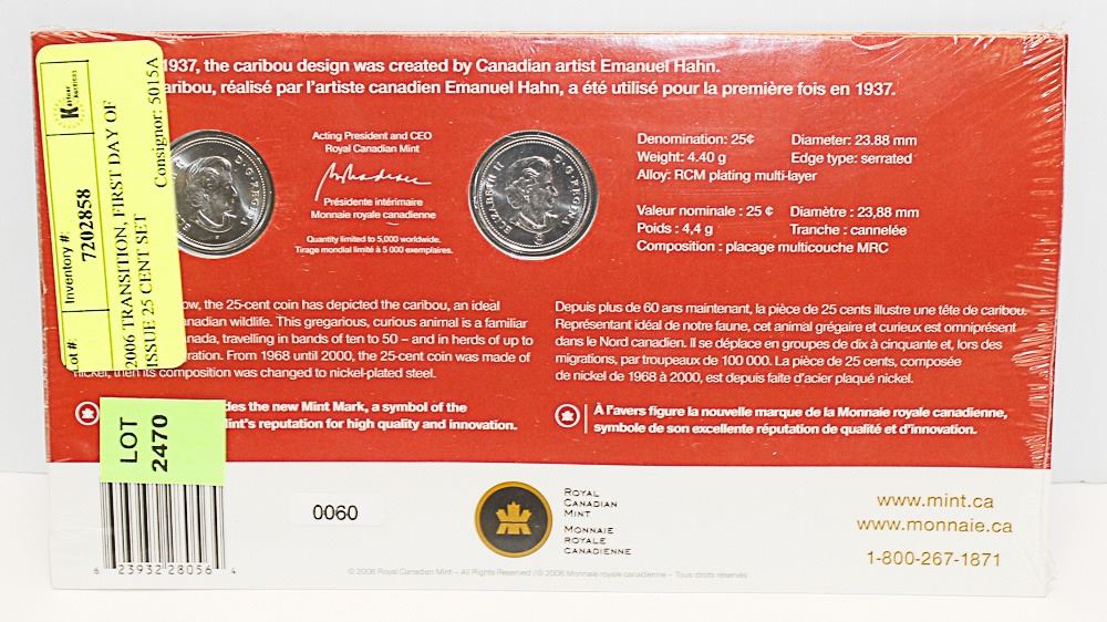2006 TRANSITION, FIRST DAY OF ISSUE 25 CENT SET