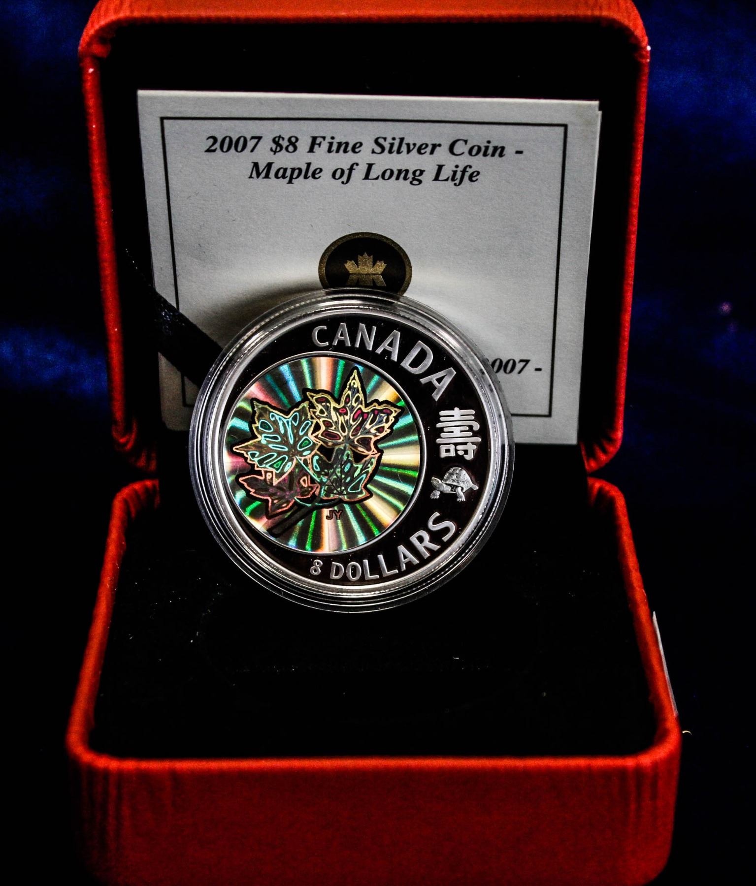 2007 MAPLE OF LONG LIFE HOLOGRAM $8 .9999 SILVER