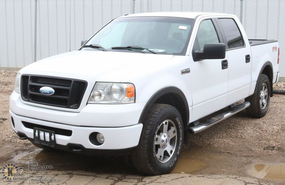 VIN: 1FTPW14V28FC13386 KM: 139,000KM Engine: 5.4L 8 CYLINDER Color: WHITE 139,000KM, AUTOMATIC, 4X4, LEATHER INTERIOR, AM/FM CD PLAYER, HEATED LEATHER SEATS, CREW CAB, NEW GLASS, GOOD TIRES, BOX COVER, CLEAN CAR PROOF, NO ISSUES. KEY ON TAG #132. ALL BIDS SUBJECT TO BANK, BAILIFF OR OWNER APPROVAL