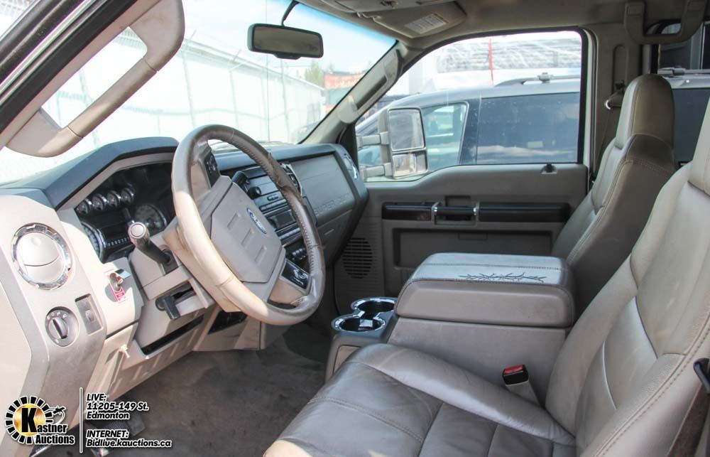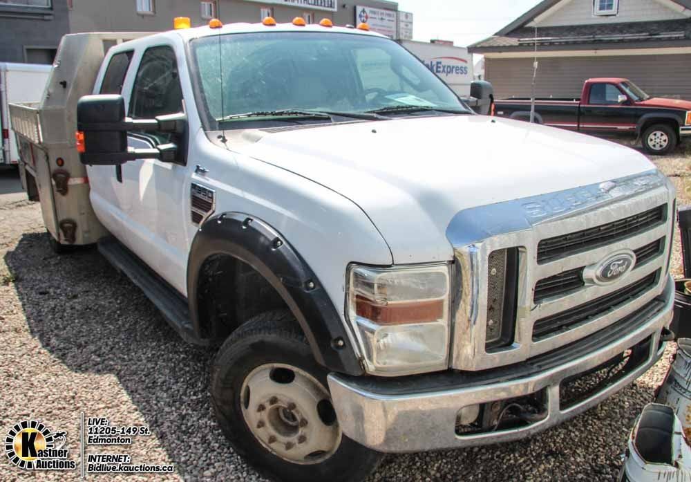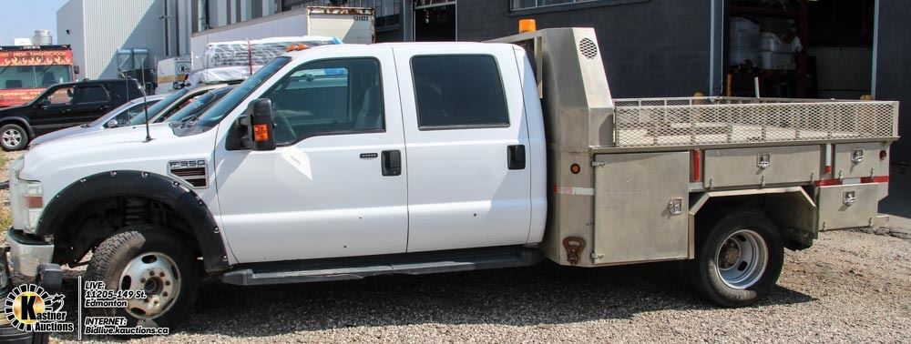 VIN: 1FDWW37R88EA57443 KM: 359,140KM Engine: 6.4 TURBO DIESEL Color: WHITE 359,140KM, AUTOMATIC, CREW CAB, LEATHER INTERIOR,8'-6" X9'-4" ALUMINUM DEMATCO CONTRACTORS/ SURVEYORS DECK WITH REMOVEABLE SIDES (DECK REPLACEMENT COST $12,000.00) , DUAL REAR WHEELS , POWER WINDOWS, POWER LOCKS, POWER MIRRORS, POWER SEATS, HEATED MIRRORS, HEATED SEATS, AIR/ TILT/CRUISE, AM/FM,6 CD PLAYER, TOW PACKAGE WITH 20,000LB TRAILER HITCH . DEACON LIGHT. KEY ON TAG # 53. ALL BIDS ARE SUBJECT TO BANK, BAILIFF OR OWNER APPROVAL. VEHICLE. AUTOMOBILE