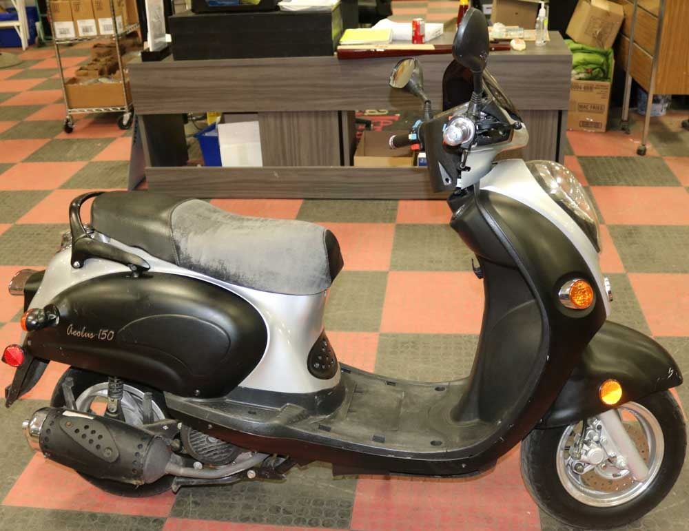 VIN: LL8TMK4F380F00196 KM: 318 MILES Engine: 150CC Color: SILVER 319 MILES, KICK START, WINDSHIELD, DISC BRAKES,KEYS ON TAG #65 . ALL BIDS SUBECT TO BANK, BAILIFF OR OWNER APPROVAL