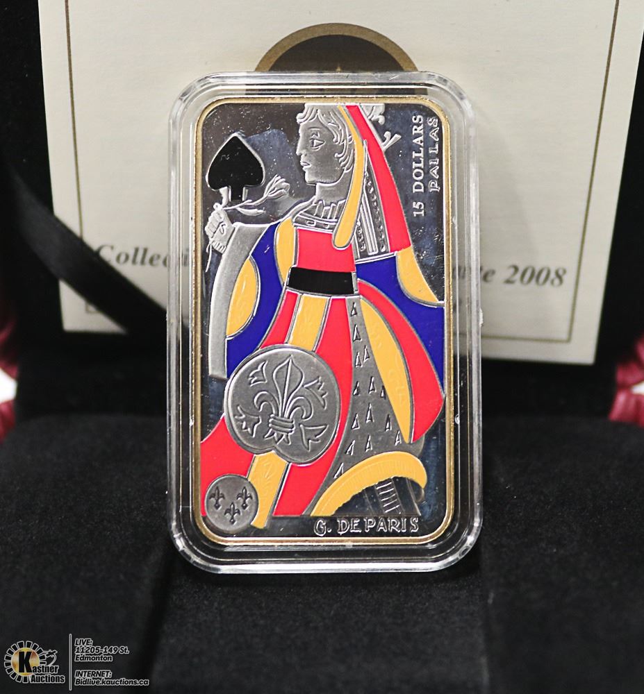 RECTANGULAR SILVER $15 PLAYING CARD MONEY COIN IN BOX
