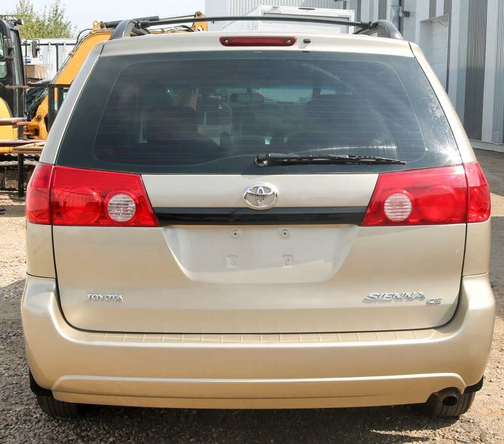 VIN: 5TDZK29C48S168274 KM: 148,000KM Engine: 3.5L 6 CYLINDER Color: GOLD 148,000KM, AUTOMATIC, CLOTH INTERIOR, POWERMIRRORS, POWER WINDOWS, POWER LOCKS, CRUISE CONTROL, AIR CONDITIONING, AM/FM CD PLAYER, 7 PASSENGER, REAR HEAT & AC, TILT STEERING, GOOD GLASS AND TIRES. KEY ON TAG #1. ALL BIDS SUBJECT TO BANK BAILIFF OR OWNER APPROVAL. VEHICLE
