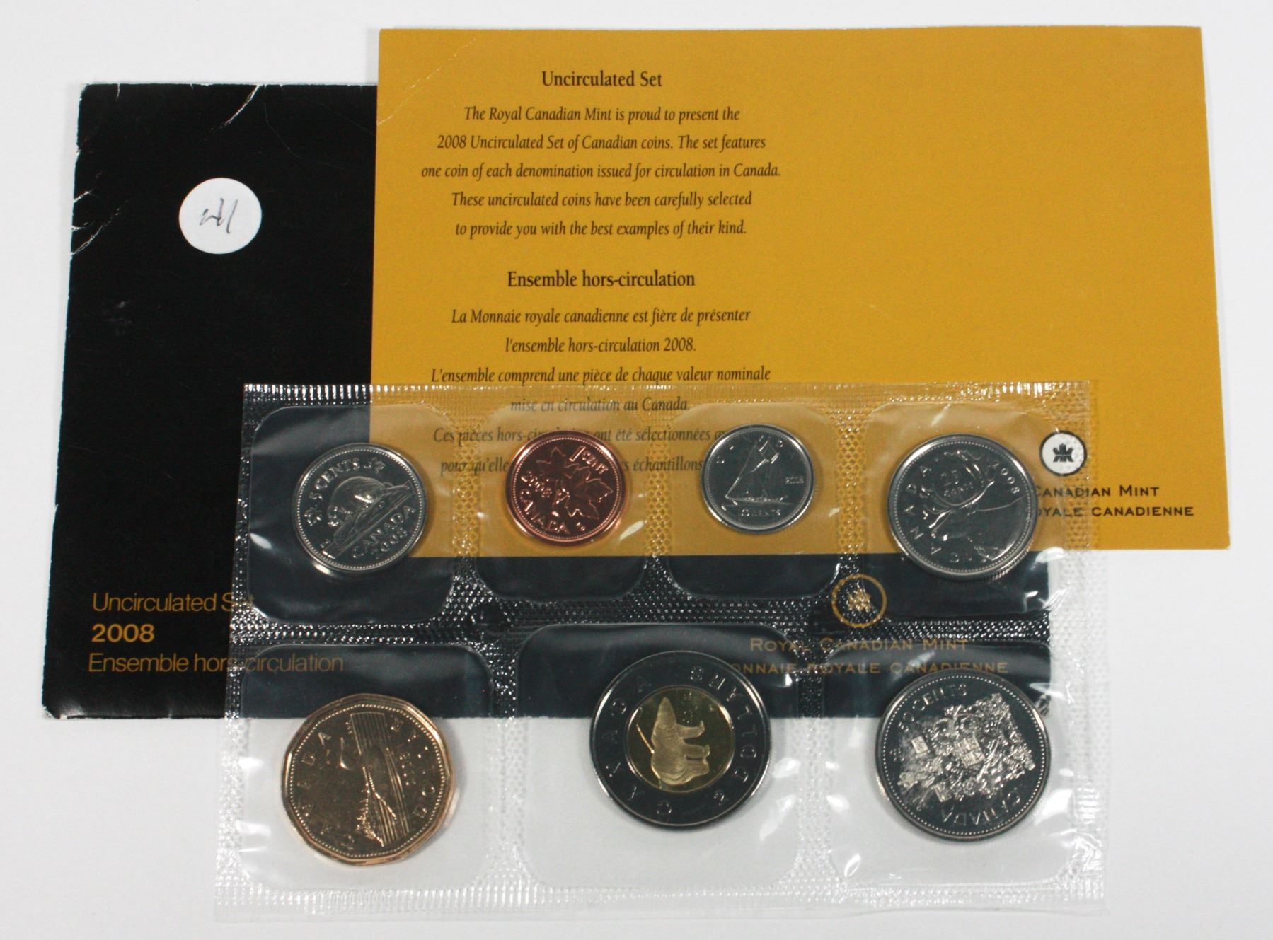 ALL COINS HAND SELECTED AS PER DOCUMENTS WITH THE COINS AND ARE N.B.U. 67-68. FROM AN ESTATE COLLECTION. PART OF GOVT RECALL 2020 NO LONGER CIRCULATING COINAGE. 2008 (42,822) World Wide This limited-edition set features numismatic versions of the seven Canadian circulation coins. Carefully hand-selected, these coins are the best of their kind