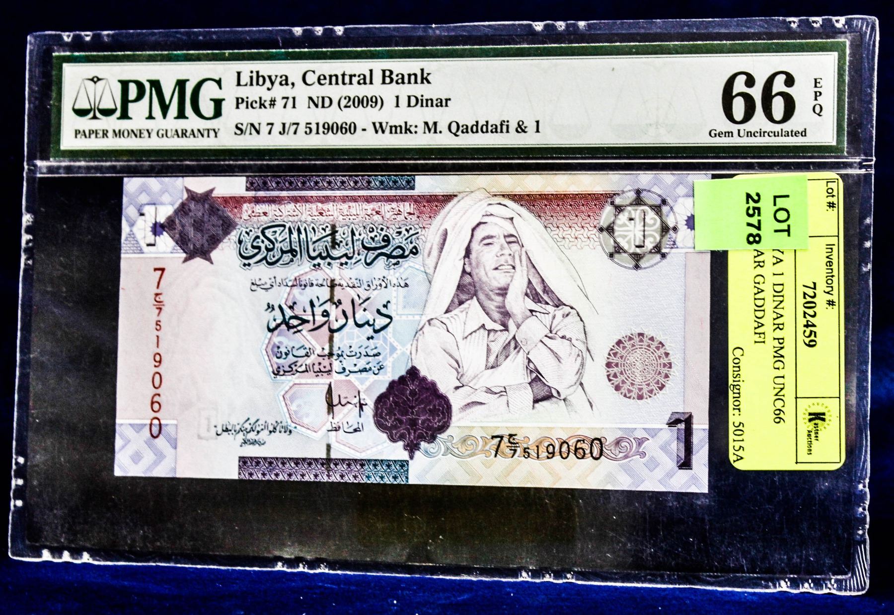 2009 LIBYA 1 DINAR PMG UNC66 MUAMMAR GADDAFI