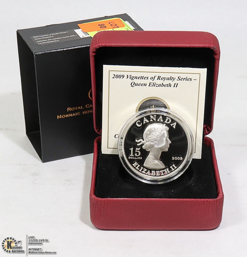 2009 SILVER QUEEN ELIZABETH II $15 PROOF COIN, ROYAL CANADIAN MINT ISSUED