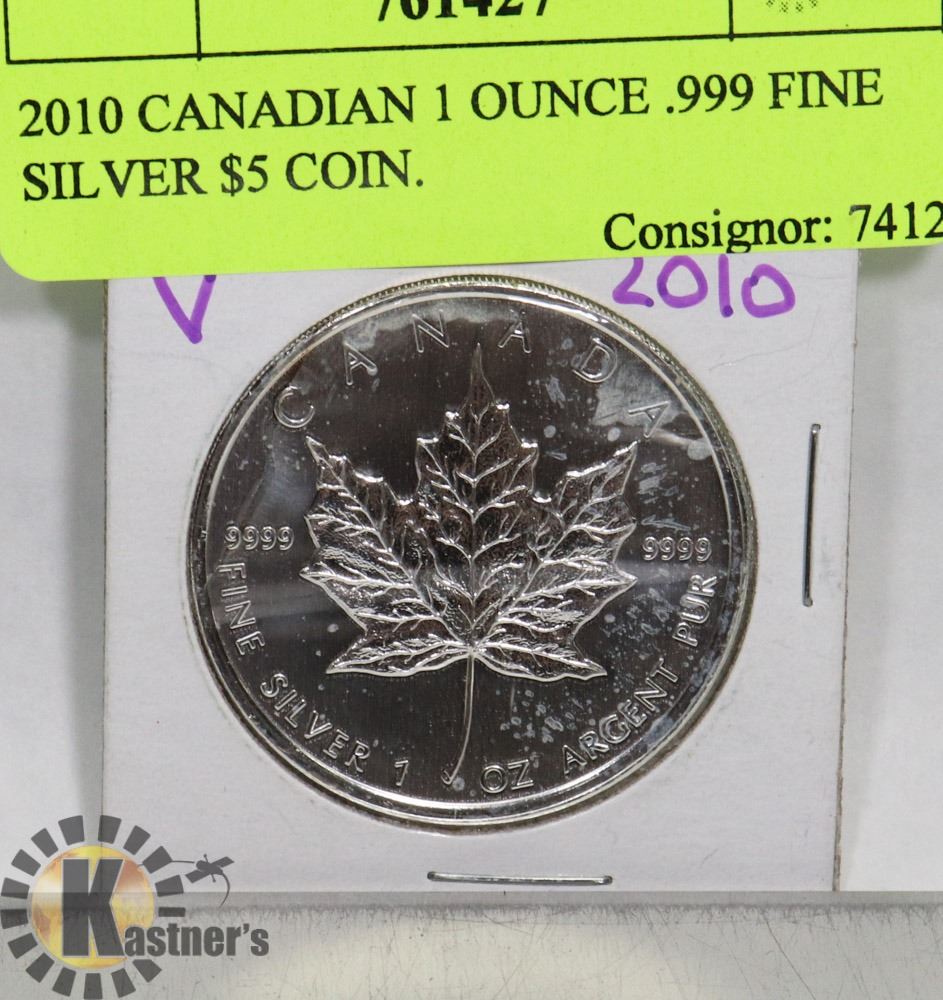 2010 CANADIAN 1 OUNCE .999 FINE SILVER $5 COIN.