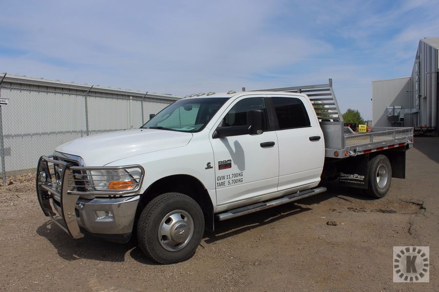 CREW CAB WITH 9'L X 8'W DECK WITH FOLDING RAILS, AUTOMATIC TRANSMISSION, NEW TIRES, PUSH BAR, HIDE AWAY 5TH WHEEL & TRAILER HITCH, ENGINE BRAKES, POWER WINDOWS/LOCKS/DRIVER SEAT, TRAILER BRAKE, AIR CONDITIONING, CRUISE CONTROL, AM/FM/CD/BLUETOOTH STEREO, & MORE - ALL BIDS ARE SUBJECT TO BANK, BAILIFF, OR OWNER APPROVAL. *KEY NUMBER 7 AT FRONT DESK*