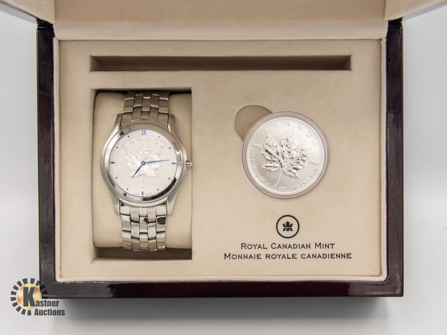 1oz SILVER MAPLE LEAF COIN + WATCH SET **ALL ITEMS MUST BE REMOVED BY 5PM SATURDAY, AUGUST 31ST 2024. ALL REMAINING ITEMS WILL BE SUBJECT TO A $6.00 PER DAY STORAGE CHARGE. ANY ITEMS REMAINING AFTER MONDAY, SEPTEMBER 23RD 2024 WILL BE CONSIDERED FORFEITED. NO REFUNDS WILL BE ISSUED FOR FORFEITED ITEMS. TO SCHEDULE A PICK UP APPOINTMENT CLICK HERE