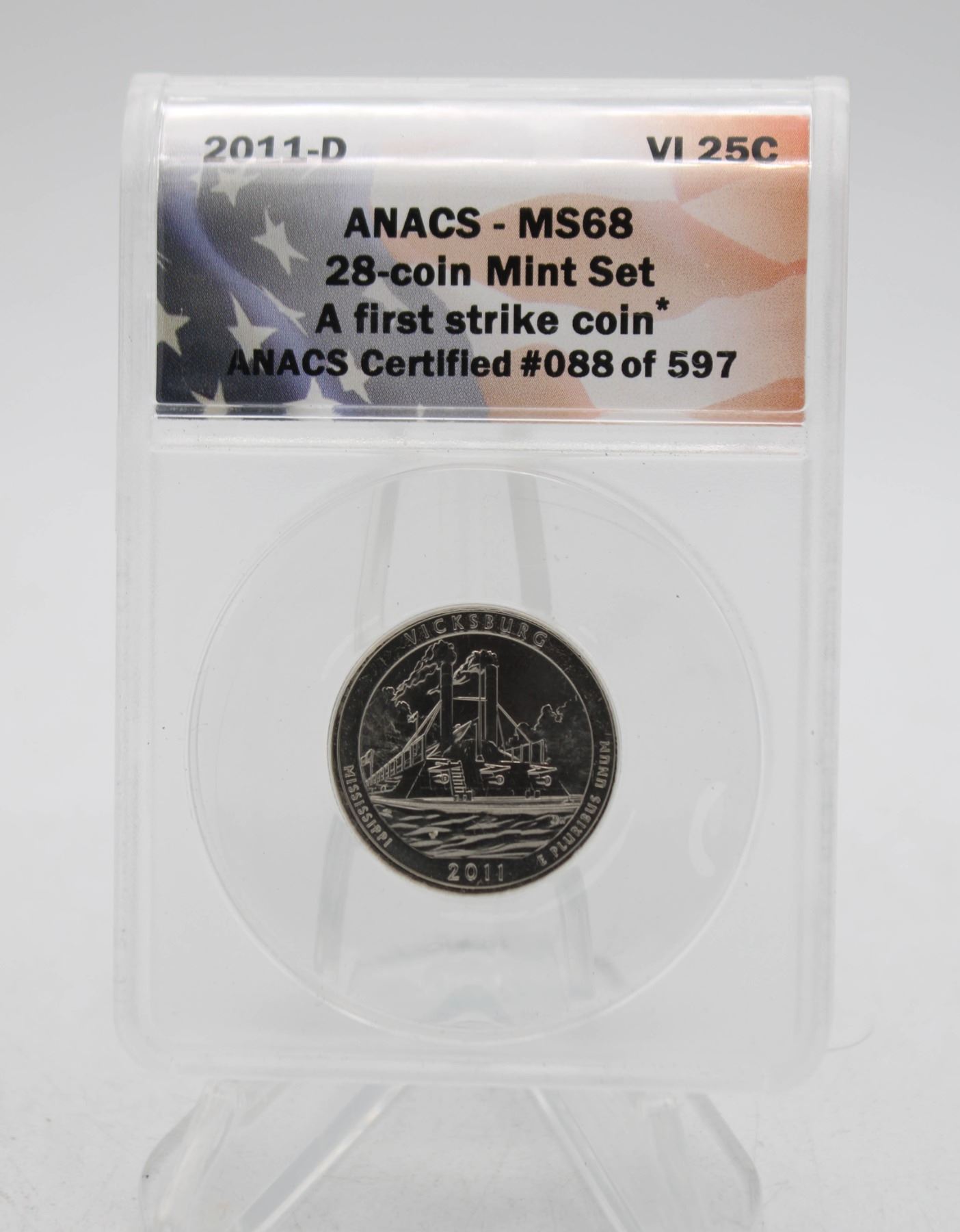 2011D USA VICKSBURG 25 CENT COIN. CERTIFIED