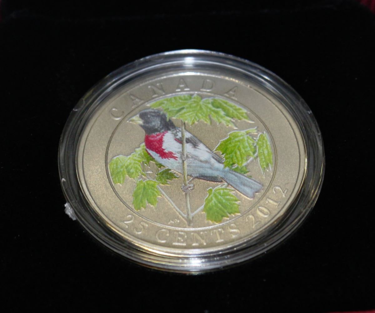 2012-25 CENT COLOURED COIN:ROSE BREASTED GROSBEAK