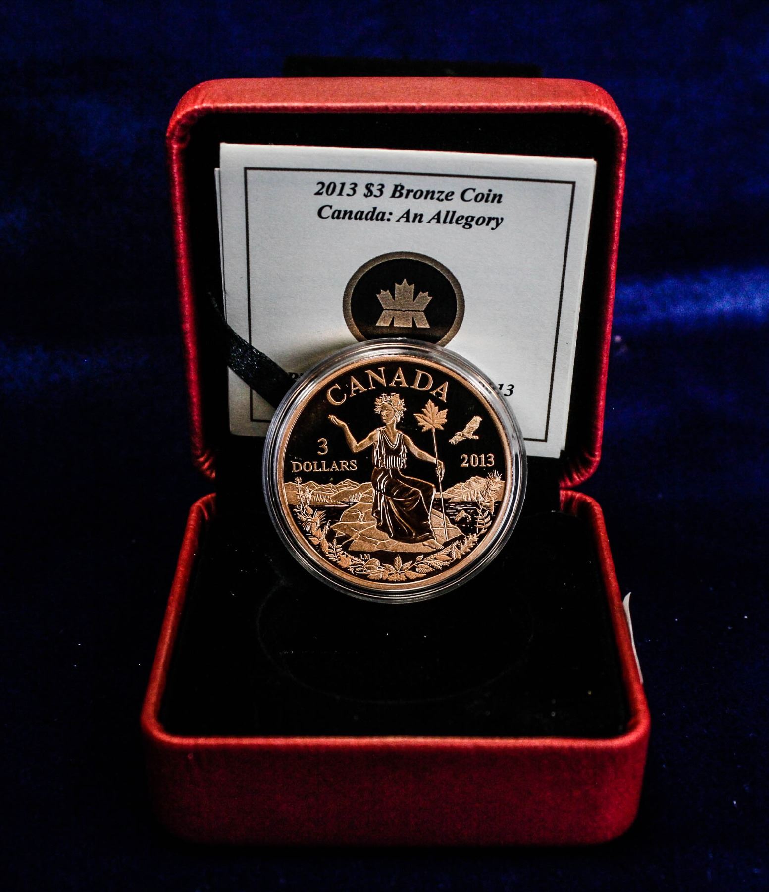 2013 CANADA BANKNOTE ALLEGORY $3 COIN IN BOX