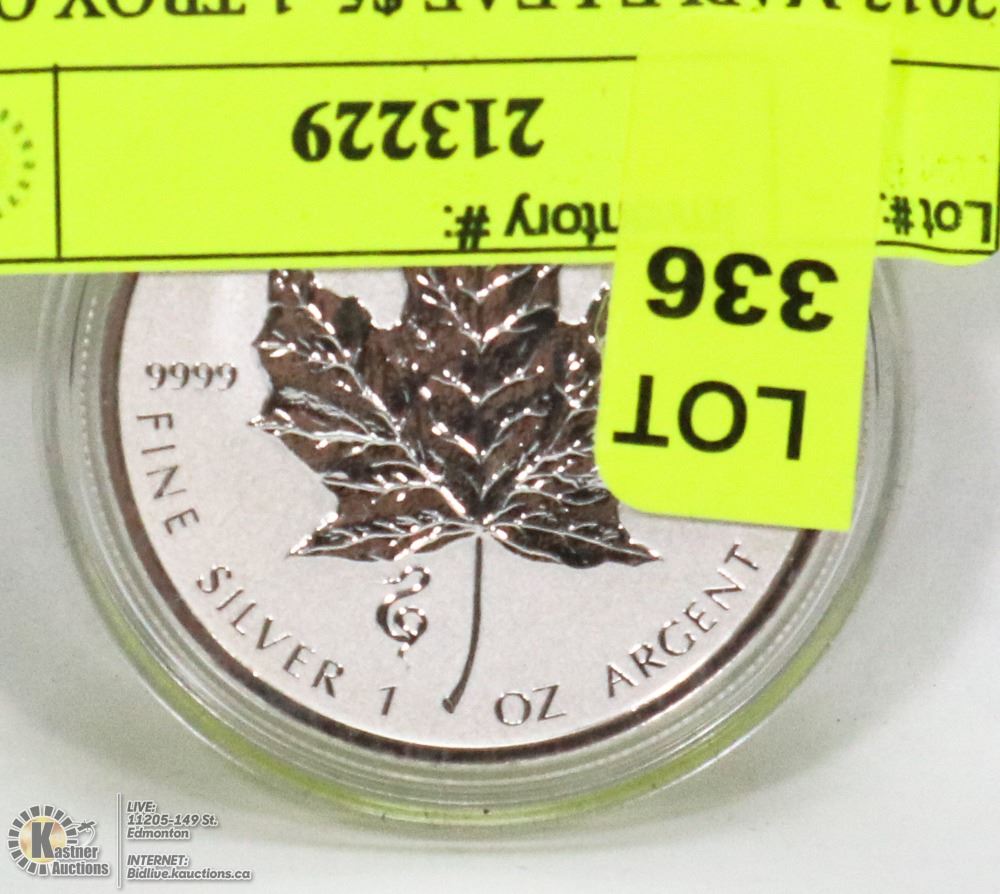 2013 MAPLE LEAF $5, 1 TROY OUNCE .999 SILVER COIN.