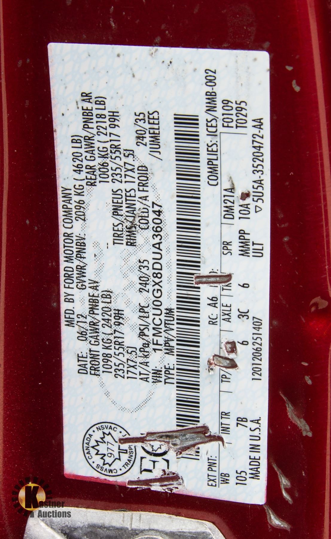 VIN: 1FMCU0GX8DUA36047