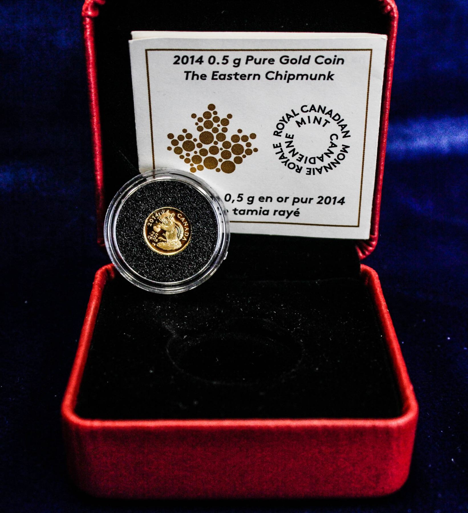 2014 .9999 GOLD CANADA 25 CENT EASTERN CHIPMUNK