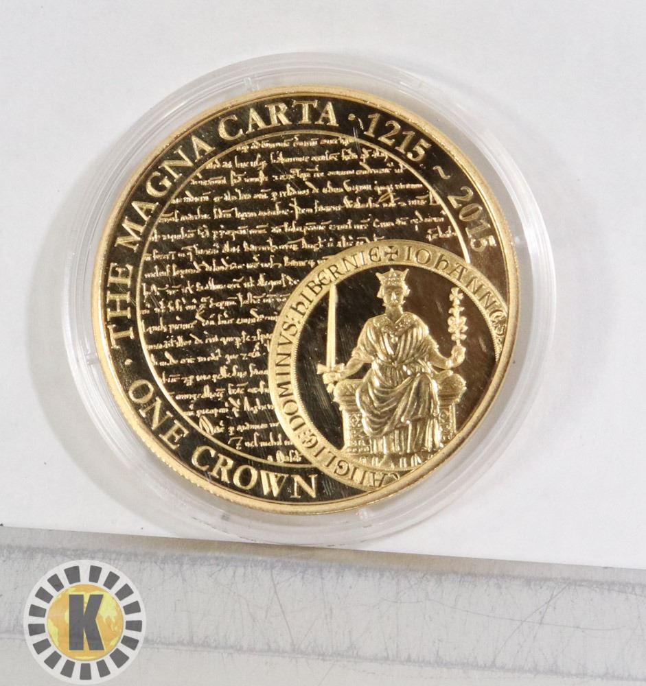 ISSUED BY TRISDAN DA CAHUNA IN 2015. GOLD PLATED 1 CROWN COIN FEATURING HISTORICAL EVENTS IN ENGLAND. ***ITEM LOCATED IN LETHBRIDGE AB