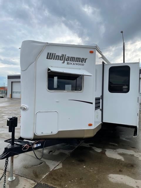 VIN: 4X4TRLF20D1849679 Color: WHITE THIS AMAZING 2015 ROCKWOOD WINDJAMMER 3008W IS A RARE V NOSE HARD WALL TRAILER. ROCKWOOD IS ONE OF THE TOP LINE TRAILERS. THIS TRAILER HAS TWO SLIDEOUTS TWO ENTRANCES POWER AWNINGS FULL LARGE FRONT KITCHEN DINETTE CEILING WITH TV FULL STEREO FULL LARGE BATHROOM REAR QUEEN MASSIVE BEDROOM AMAZING COUPLE UNIT OR SMALL FAMILY THIS HAS A POWER FRONT JACK POWER LEVELLING SYSTEMS AND POWER AWNING.ALSO HAS A LARGE LIVING ROOM WITH TWO CHAIR SITTING ROOM AND BAR COUNTER. THIS UNIT SELLS FOR BY DEALER FOR $33,900.00