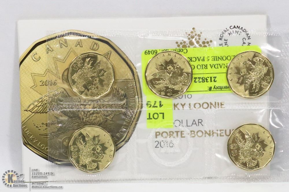 5 LOONIES IN SEALED PACKAGE - CURRENCY