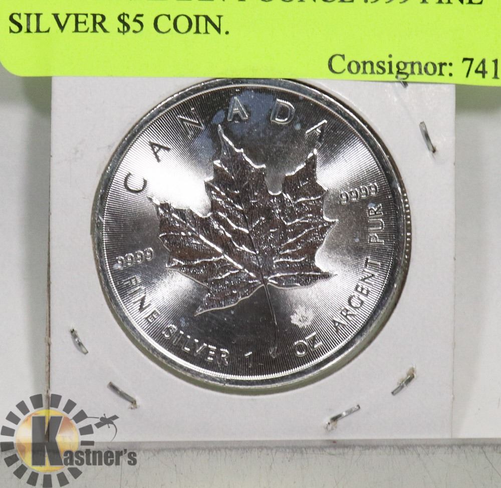 2017 CANADIAN 1 OUNCE .999 FINE SILVER $5 COIN.