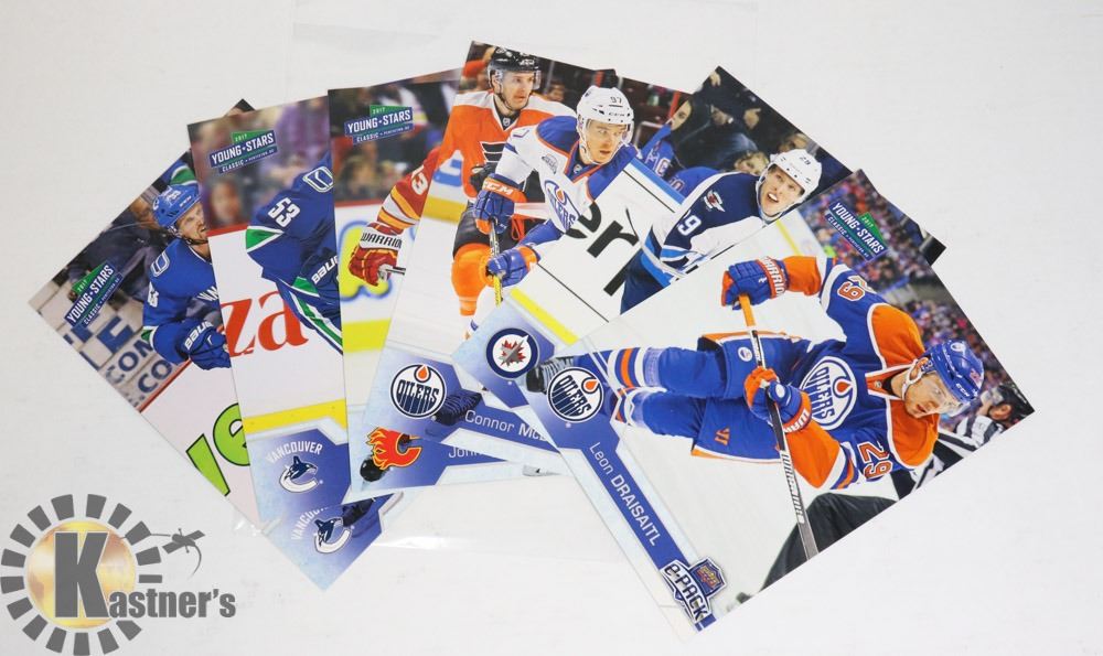 LIMITED EDITION UD PROMO OVERSIZED CARDS FROM THE 2017 YOUNG STARS GAME SEDIN HORVAT GAURDEAU MCD AND DRAI