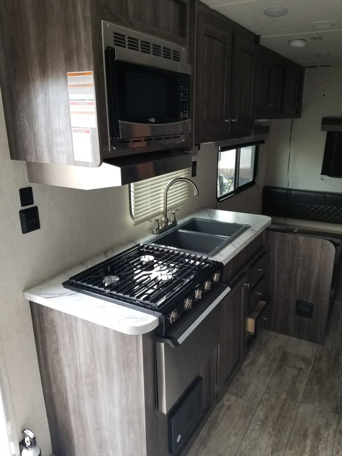 VIN: 58TBH0BL3K25J3142 AMAZING CONDITION 2019 OPEN RANGE 21 FB TRAILER, MODERN DESIGN STAINLESS KITCHEN, FULL BATHROOM, LIGHTWEIGHT PULL WITH SMALL TRUCK SUV. POWER AWNING, MSRP $24,999 - OUTDOORS/AUTOMOTIVE