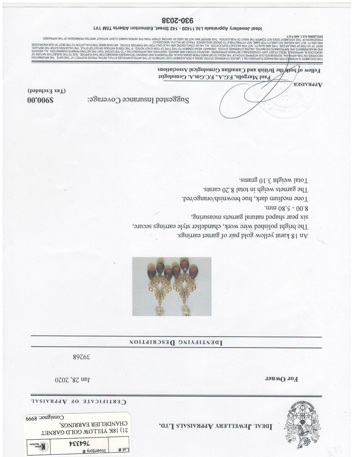 SIX PEAR SHAPED NATURAL GARNETS (MEASURING 8.00 - 5.80 MM, TONE MEDIUM DARK, HUE BROWNISH/ORANGE/RED, WEIGHING 8.20 CARATS). COMES WITH CERTIFICATE OF APPRAISAL FROM LOCAL APPRAISER, SUGGESTED INSURANCE COVERAGE $900.00.JEWELLERY