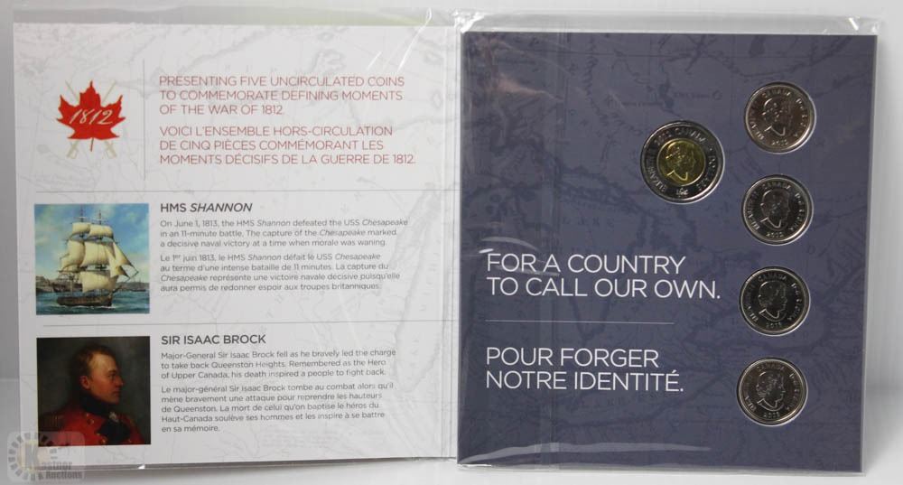 FIVE UNCIRCULATED COINS TO COMMEMORATE DEFINING MOMENTS OF THE WAR OF 1812.
