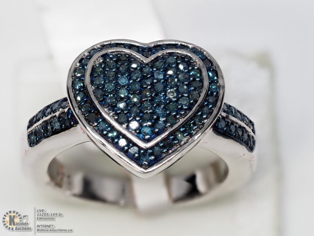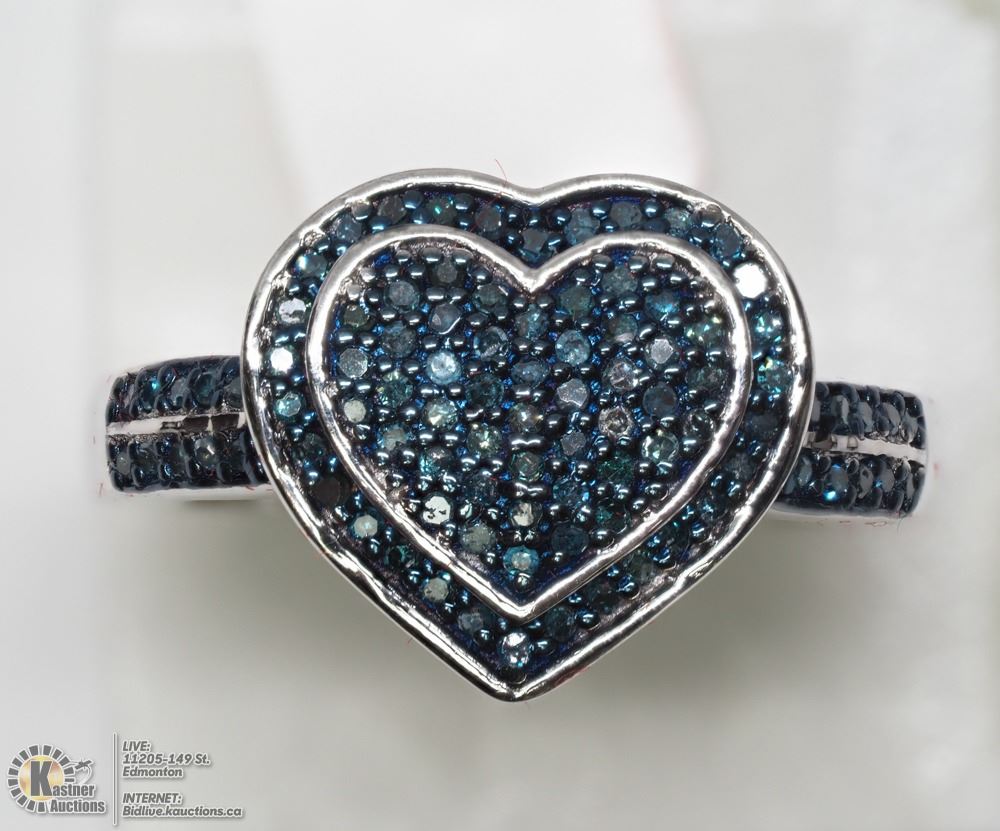 21-LS23- STERLING SILVER HEART SHAPED RING SIZE 6.75 SET WITH 94 GENUINE DIAMONDS (.5CT). SUGGESTED RETAIL VALUE $700.00. JEWELLERY