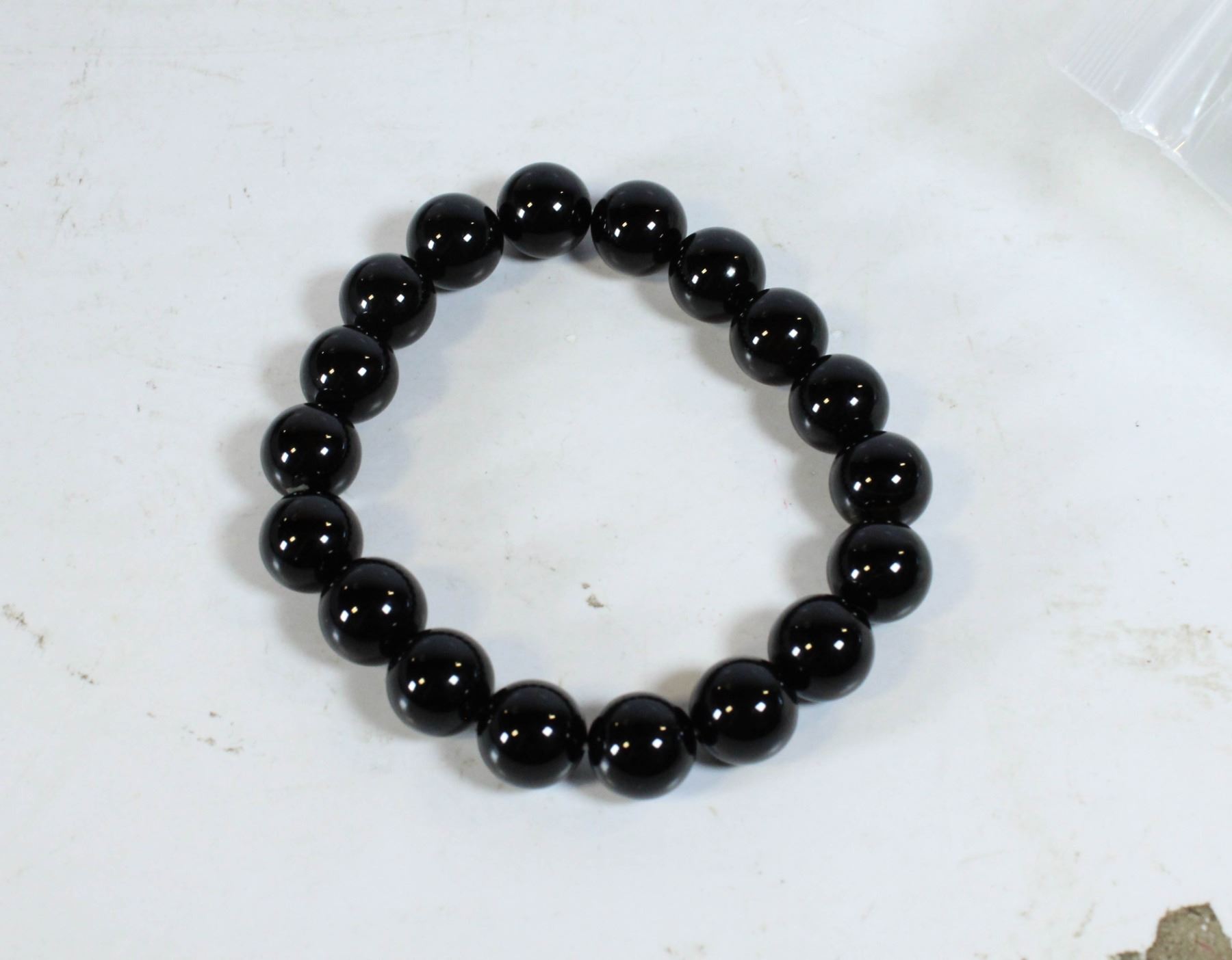 #216- NATURAL BLACK OBSIDANT BEAD BRACELETE 10 MM