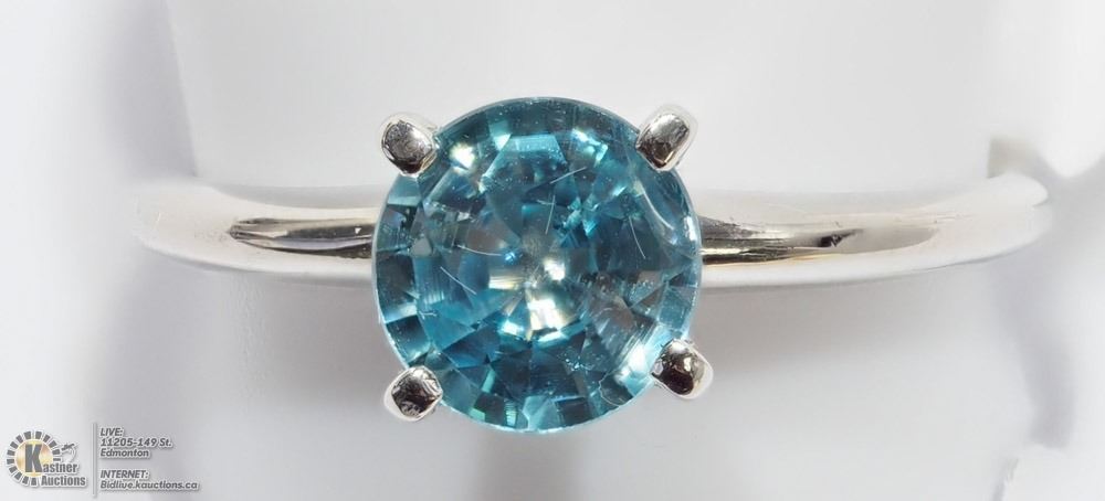 22-JP122 - 10KT GOLD BLUE ZIRCON (1.20CT) RING (2.30G), MADE IN CANADA W/COA. SUGGESTED RETAIL VALUE $1875. JEWELLERY