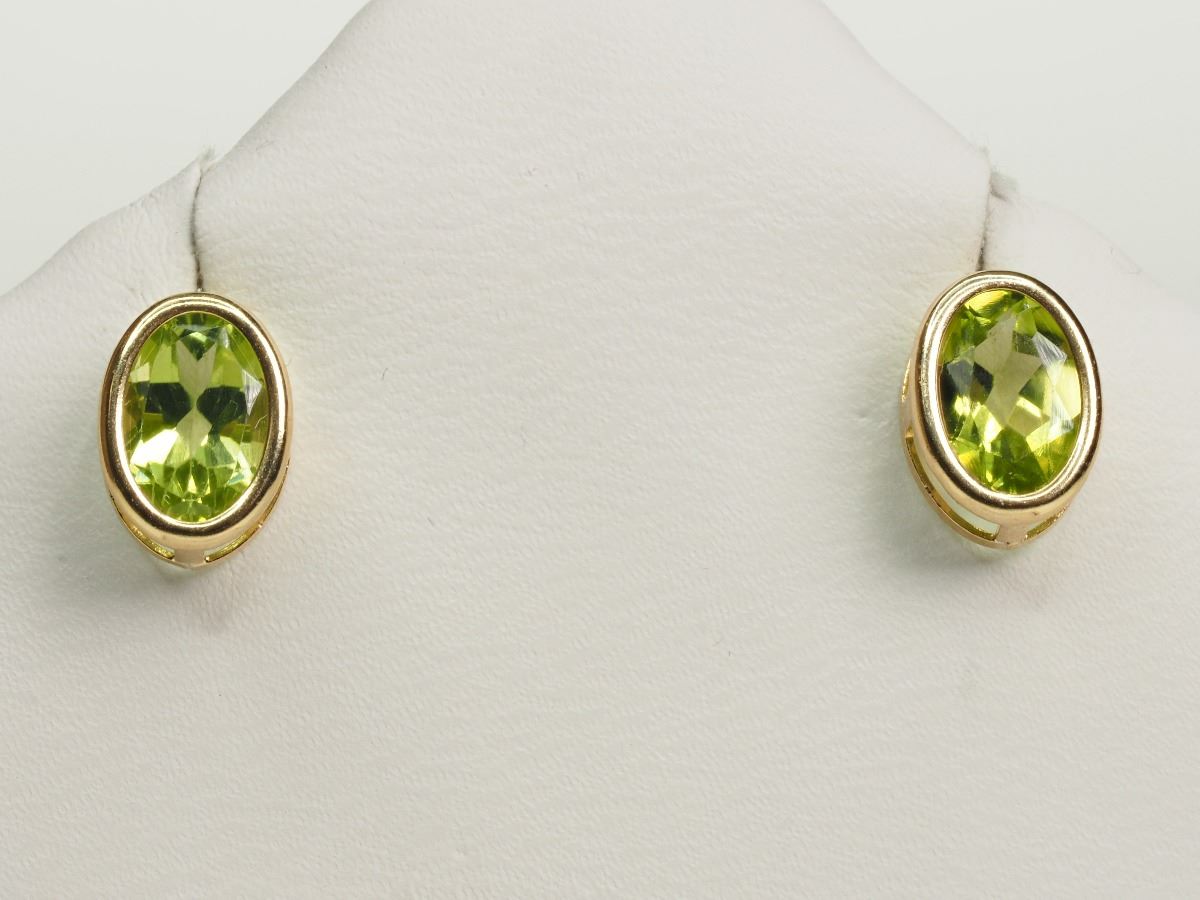 #22-14K YELLOW GOLD PERIDOT OVAL STUD EARRINGS