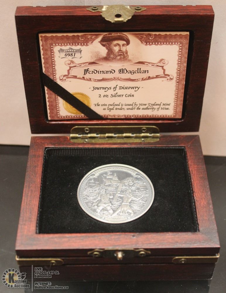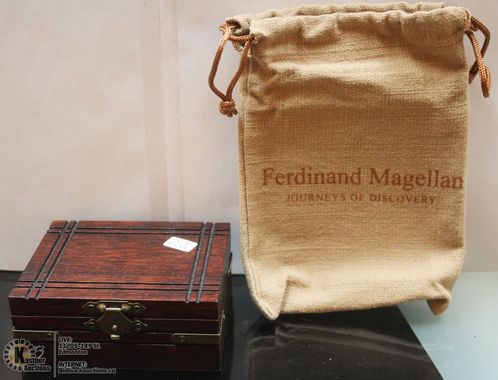 JOURNEYS OF DISCOVERY - FERDINAND MAGELLAN - COMES IN A TREASURE CHEST WITHIN A TREASURE BAG WITH THE COA, THIS RELIEF ENGRAVED COIN SHOW FERDINAND MAGELLAN FIGHTING FOR HIS LIFE IN THE PHILIPPINES
