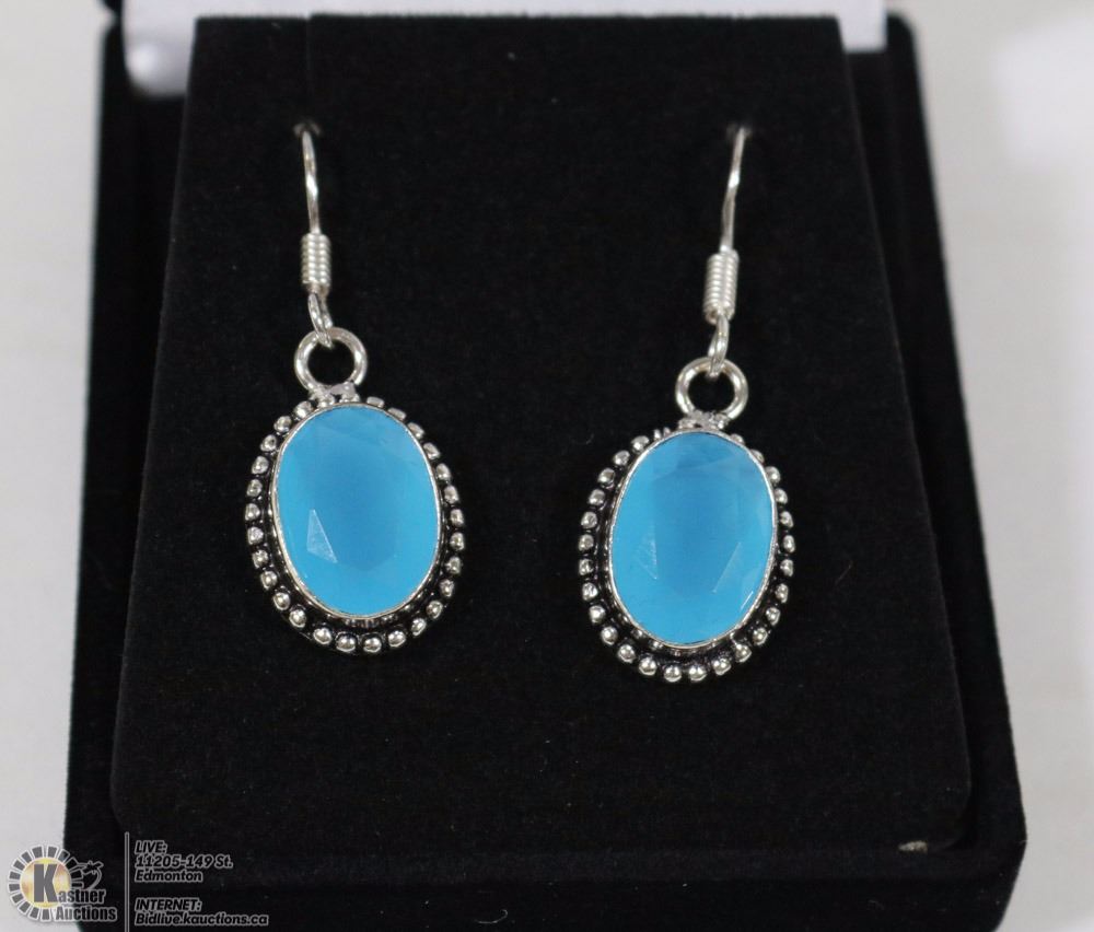 #22- BLUE CHALCEDONY GEMSTONE EARRINGS