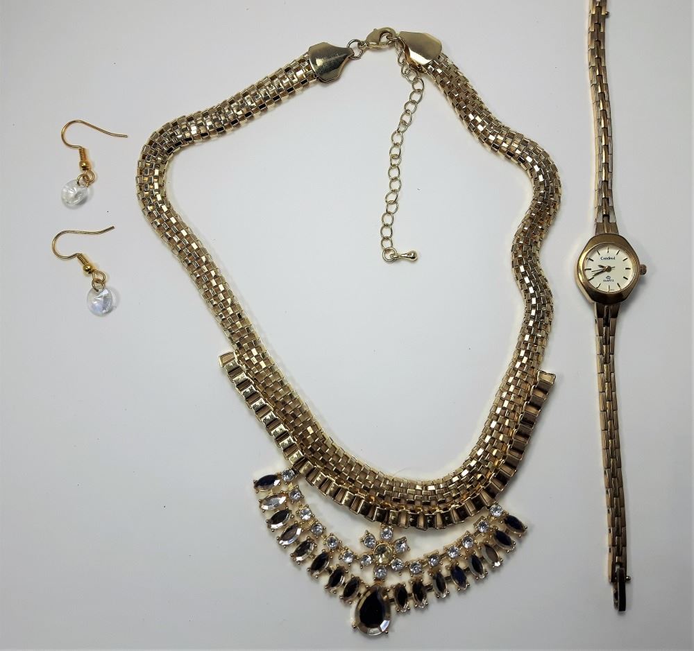 STATEMENT NECKLACE WITH COORDINATING SWAROVSKI CRYSTAL EARRINGS & CARDINAL WATCH WITH NEW BATTERY