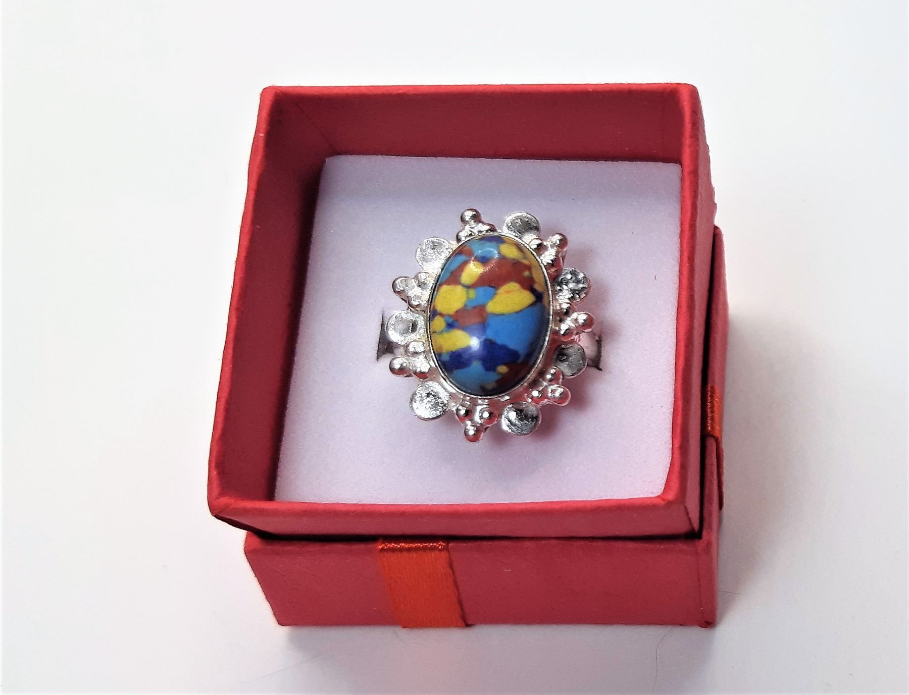 WITH A SUNBURST SETTING, STAMPED 925 SILVER, SIZE 7. JEWELRY