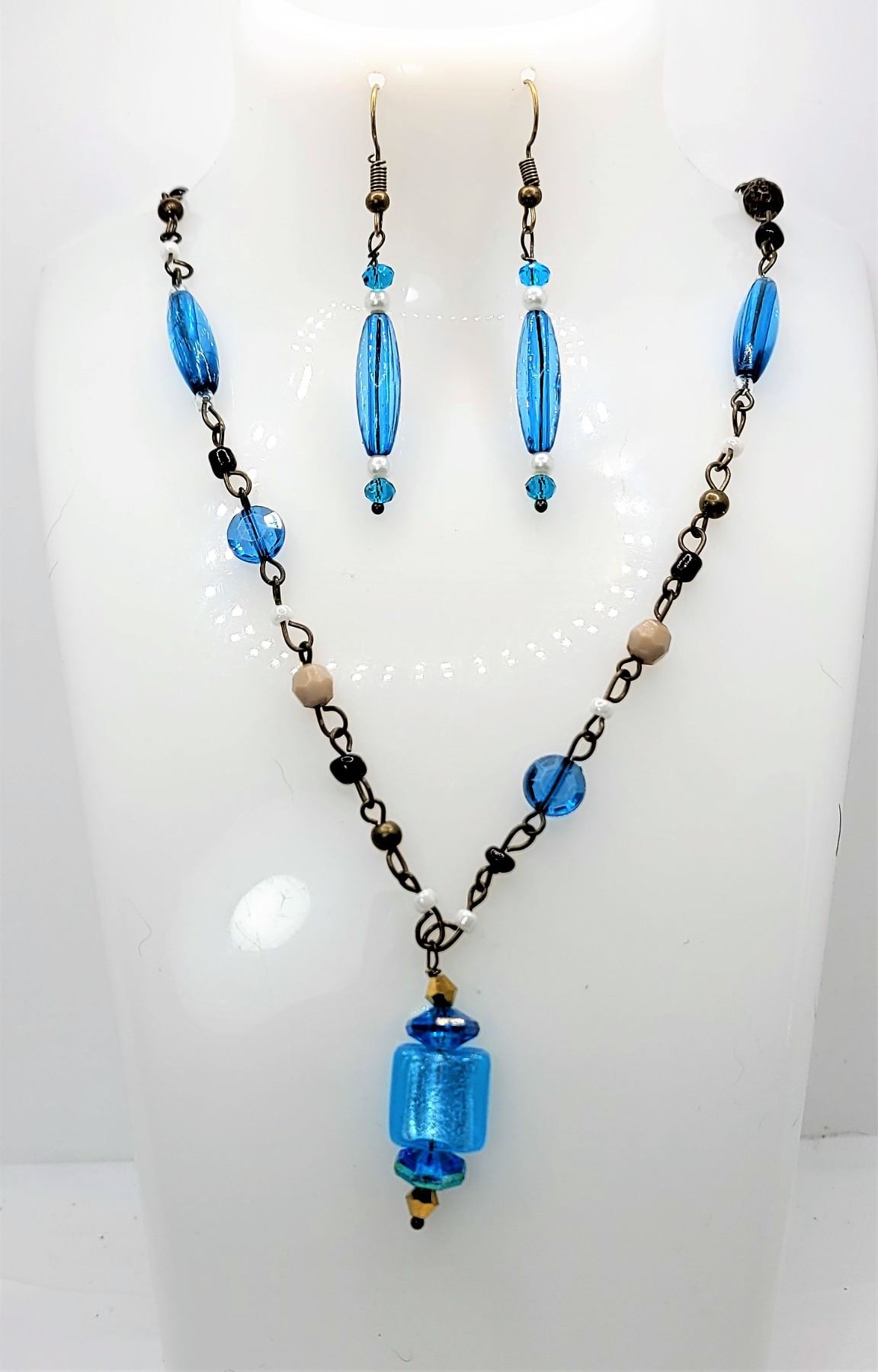 EARRINGS AND MATCHING 22" NECKLACE WITH A MURANO GLASS DROP, NECKLACE HAS A 2" EXTENDER. JEWELRY