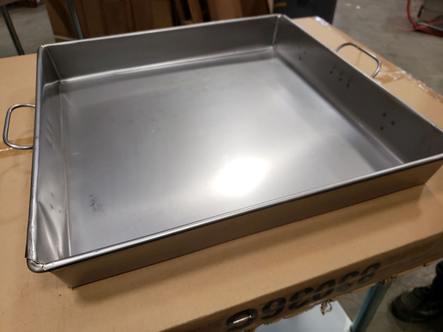 KW826 - NEW 22 X 22 X 3.5" STRAPPED STEEL ROAST PAN, JOHNSON-ROSE 3781