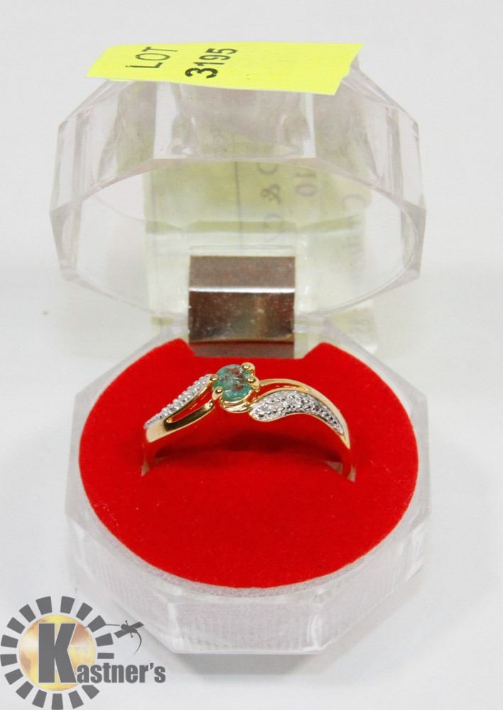#228- GREEN EMERALD & CZ GEMSTONE RING SIZE 10